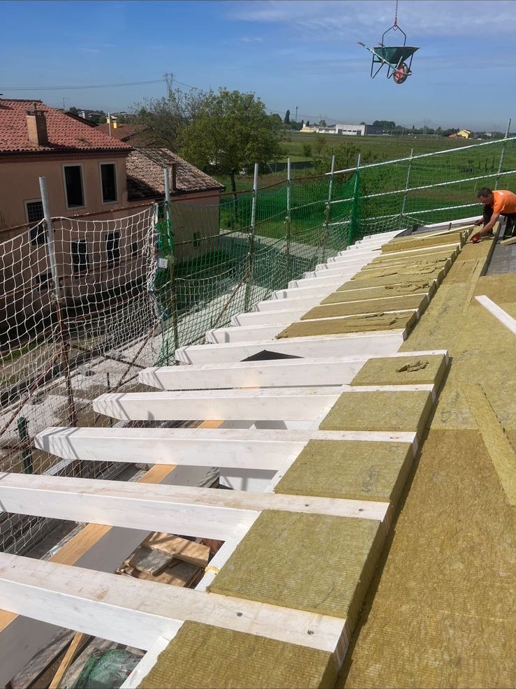 Ci occupiamo del rifacimento del tetto, della posa di guaine e isolanti quali lana di roccia e